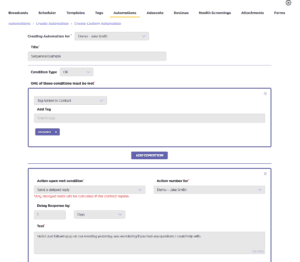 - Add one of these tags to a contact → delayed message actions get scheduled and appear as Upcoming Messages in the conversation UI (message compressor).